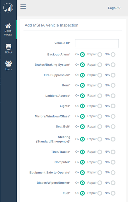 - Our Web Based MSHA forms tracks each checkbox click so we have record in cases of "Failed to Submit" problems